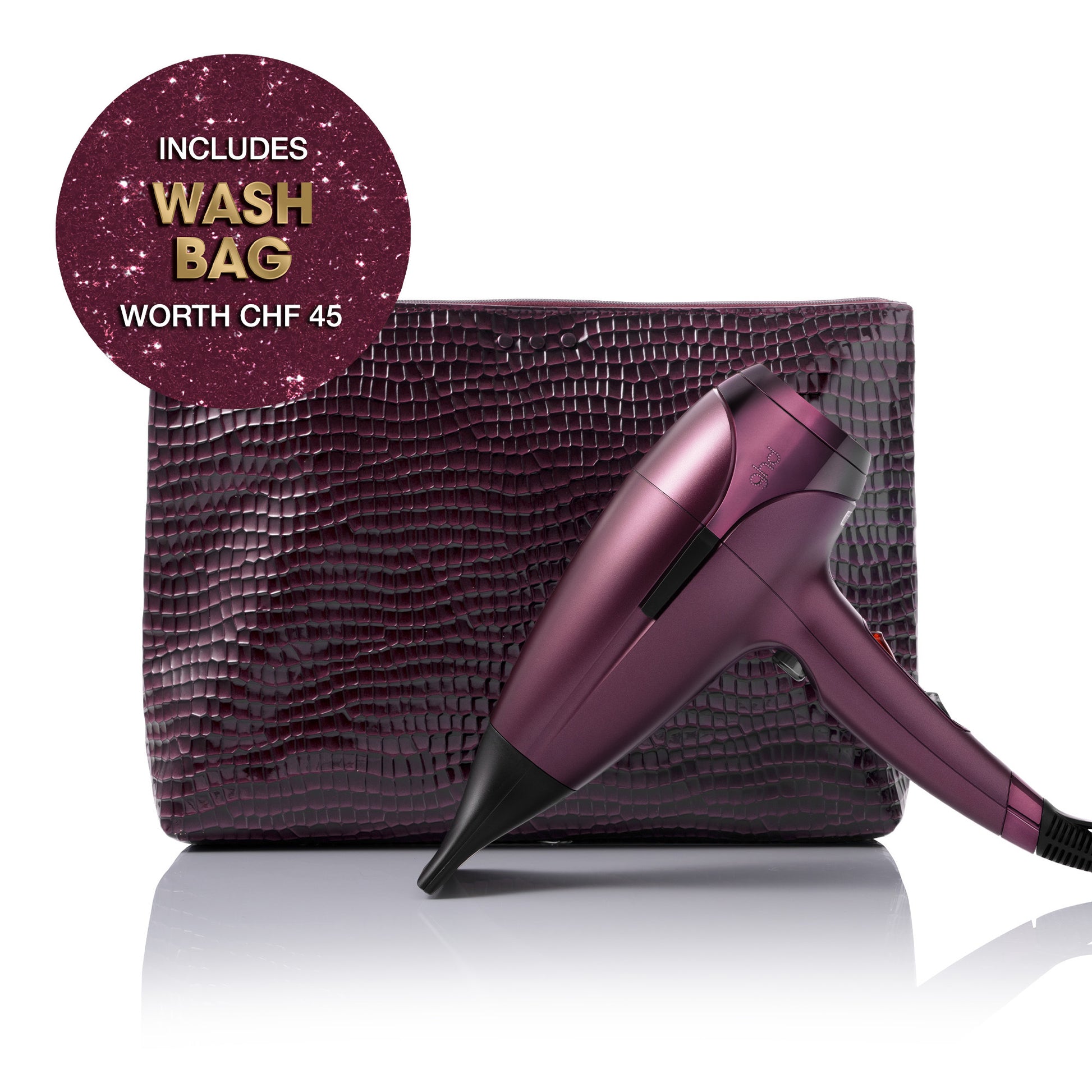 In einer kräftigen Farbpalette stehen diese Festtage ganz im Zeichen verführerischer und zeitloser good hair days. Der ghd helios® professional Haartrockner ist in einem verführerischen Kirschton gehalten und wird von einer passenden Travelbag begleitet.